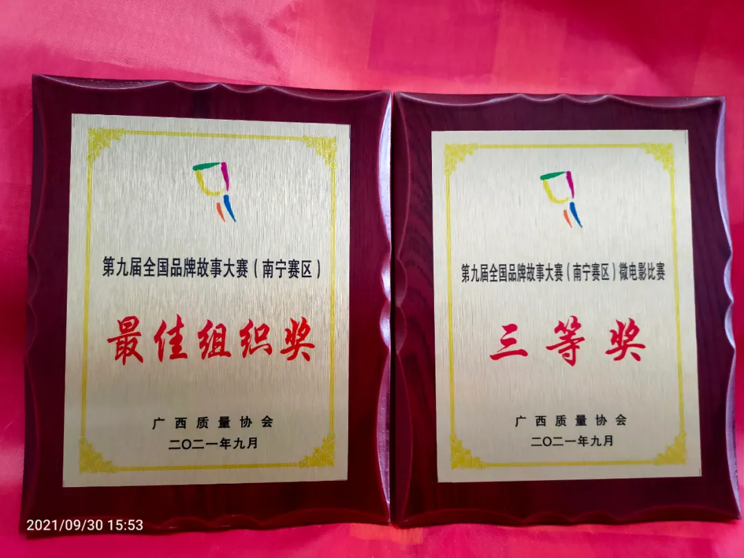 广西百色市澄碧湖饮用水有限公司参赛的微电影作品《好水润红城》荣获第九届全国品牌故事大赛(南宁赛区)三等奖,品牌故事征文比赛作品《好水润红城》获优胜奖,演讲作品《以国企担当造行业标杆》获优胜奖。此外,凭借在此次大赛中表现突出,百澄公司荣获本次大赛最佳组织奖。